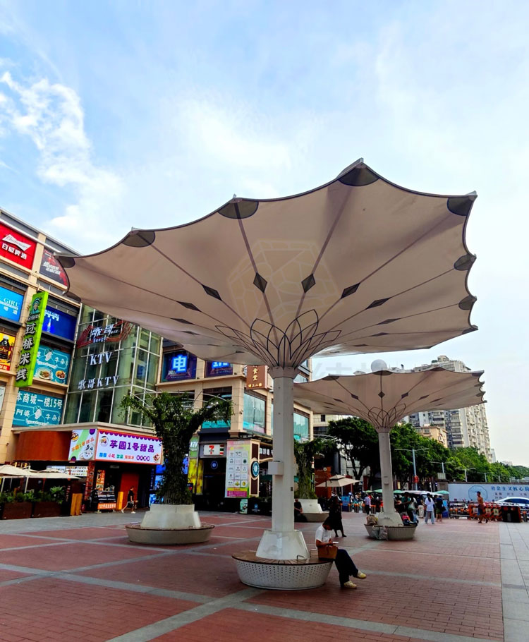 • 滨水区域:湖边、海边的观景平台或休憩区,膜结构的流线型造型能呼应水的灵动,白色或浅色系膜材还能与蓝天、碧水形成清爽的视觉搭配。